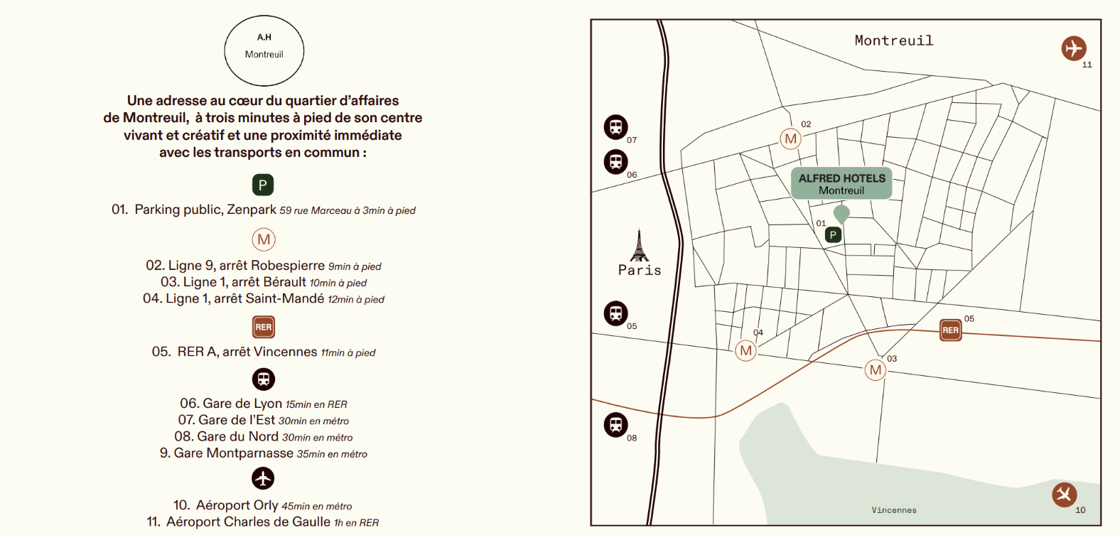 Alfred Hotels incarne une nouvelle vision de l’hôtellerie aux portes de Paris. Entièrement rénové en 2026, l’établissement marie avec finesse confort contemporain et élégance discrète, dans une atmosphère à la fois chaleureuse et raffinée. Idéalement situé au cœur de Montreuil, à quelques minutes de Paris, l’hôtel propose des chambres accueillantes et soigneusement aménagées, un petit-déjeuner gourmand mettant à l’honneur des produits de qualité, ainsi qu’un service attentif et souriant.
