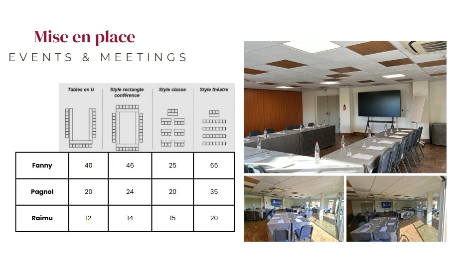 1 salle de réunion pour la journée + 2 collations + 1 déjeuner Minimum participants : 8
