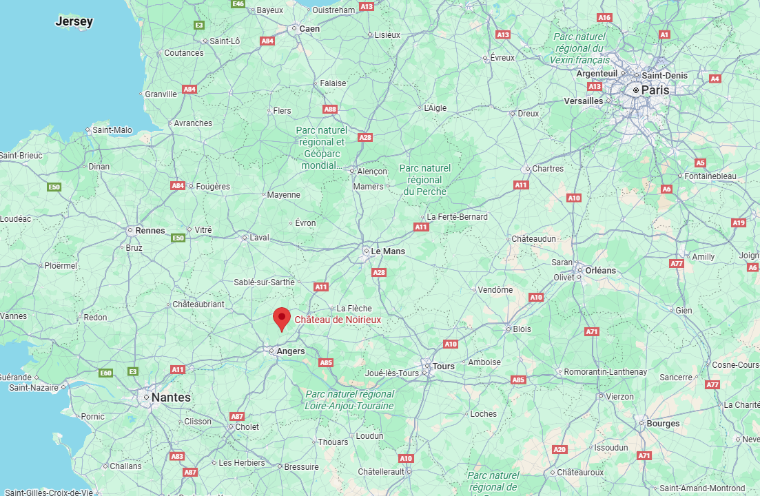 À seulement 20 minutes d’Angers, dans la vallée préservée du Loir, le Château de Noirieux est un écrin de verdure et d’histoire niché dans un parc luxuriant de neuf hectares. Ce domaine d’exception, habité depuis le XVe siècle, rassemble un élégant manoir et un château de caractère, accueillant 19 chambres et suites au charme raffiné.