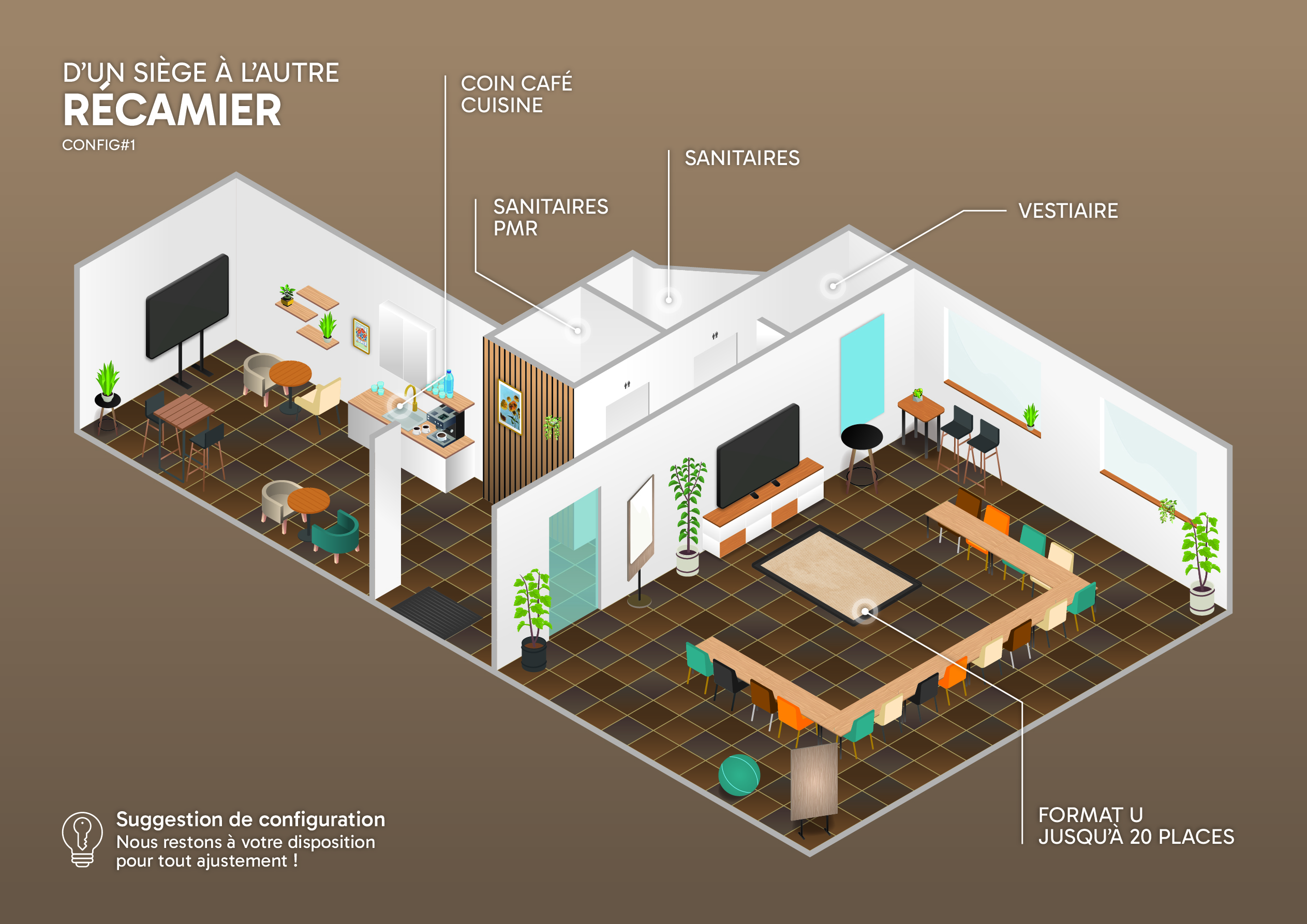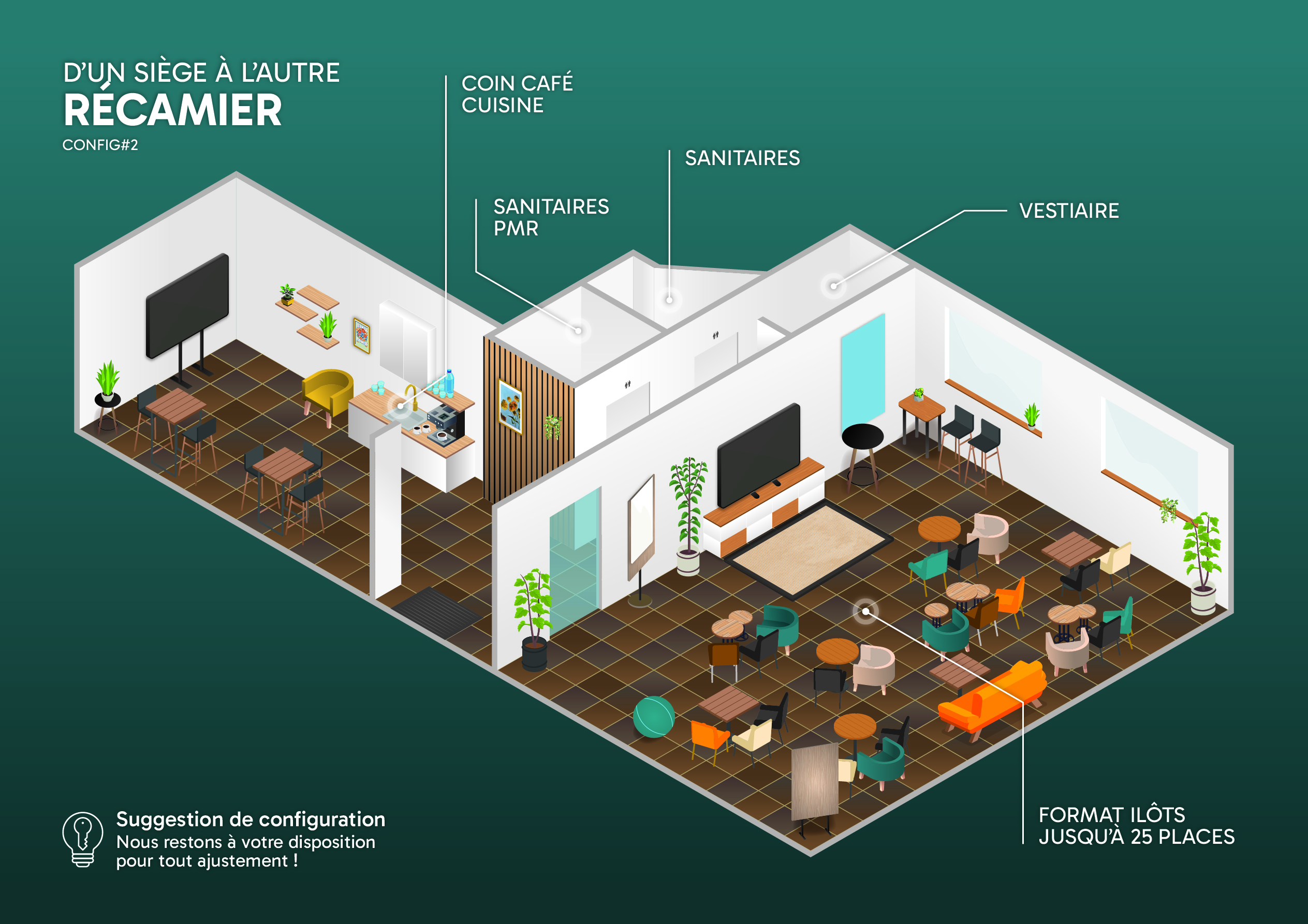 Nous vous accueillons dans un lieu convivial, fonctionnel et privatisé pour votre entreprise, jusqu'à 40 personnes en format théâtre.