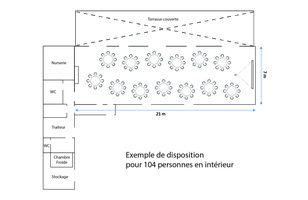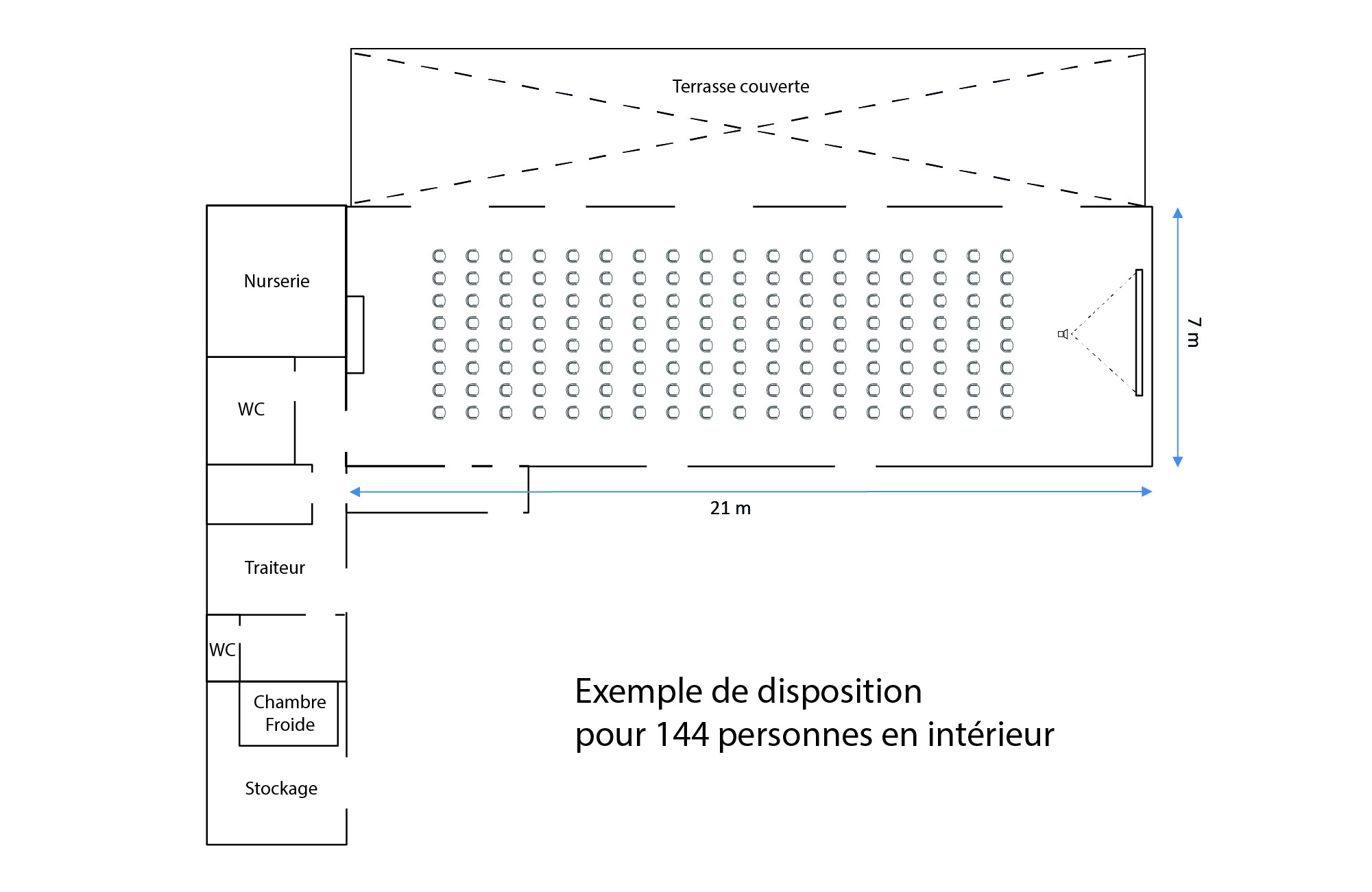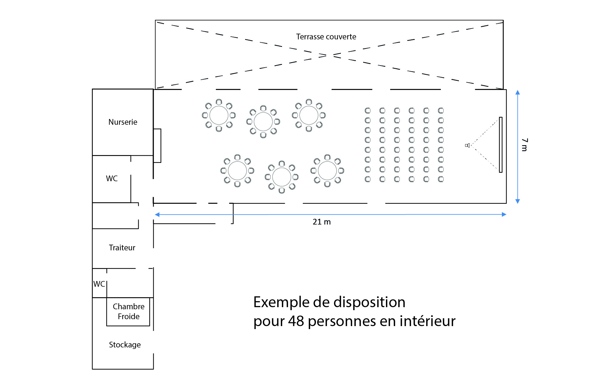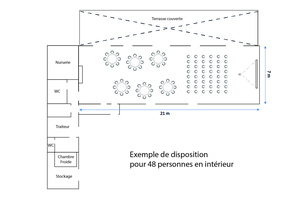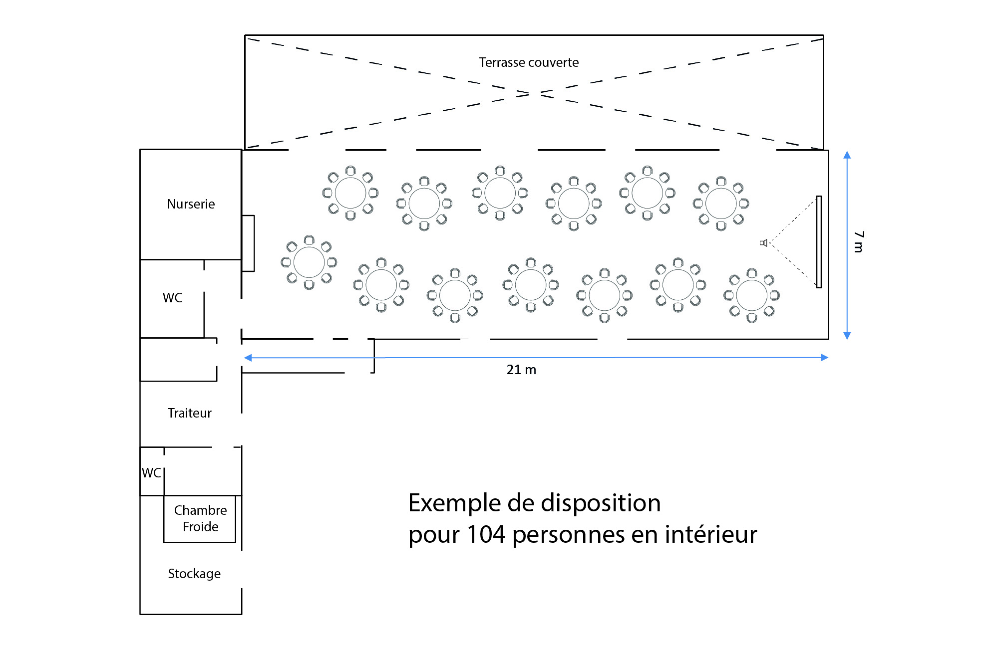 1 espace de réception pour la soirée + 1 cocktail comprenant 15 pièces par pers. + 1 bouteille de vin pour 3 pers. |