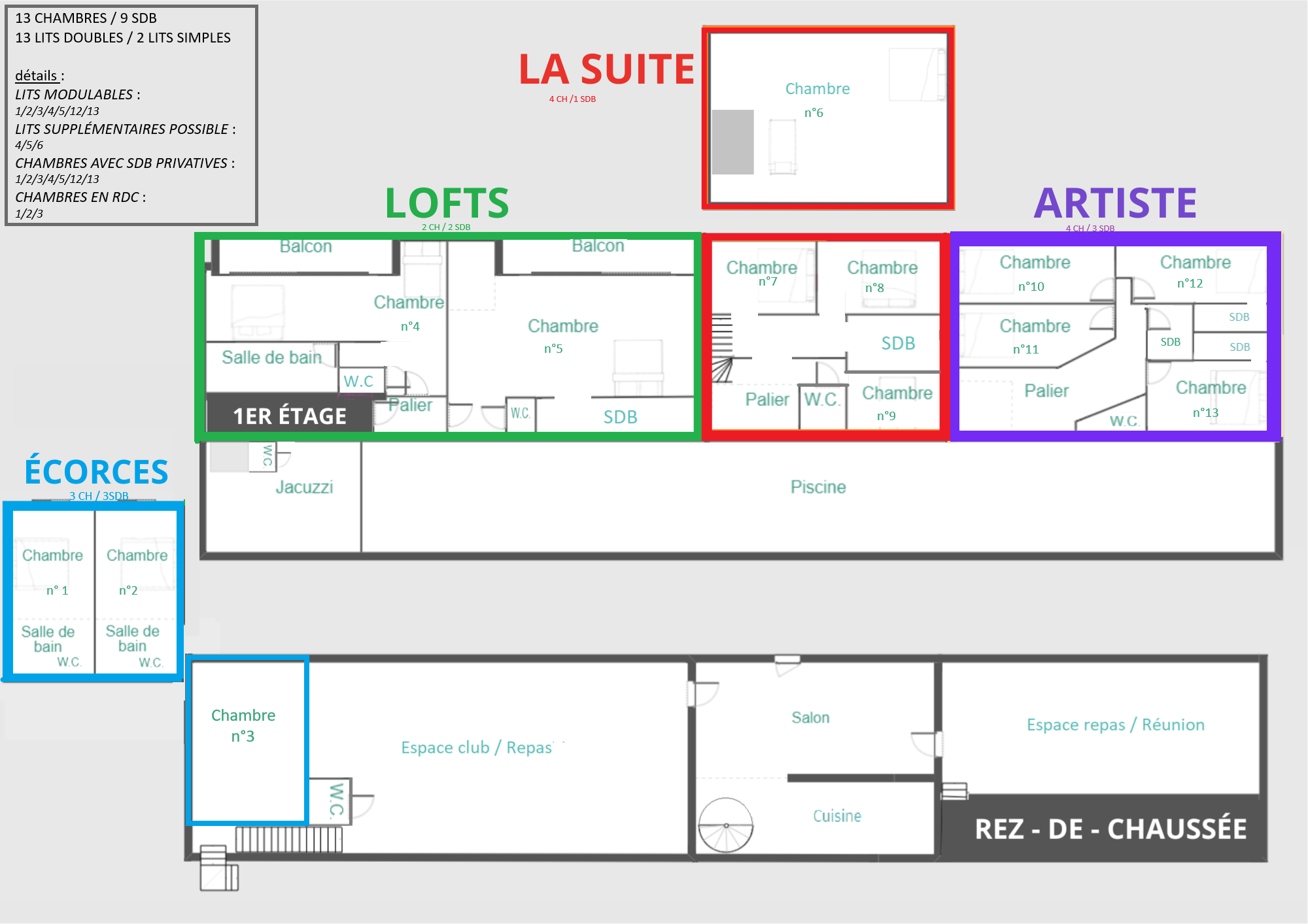 Domaine de 7 hectares au bord de rivière avec piscine de 20m, jacuzzi, espace réunion, hébergements, espace club/discothèque