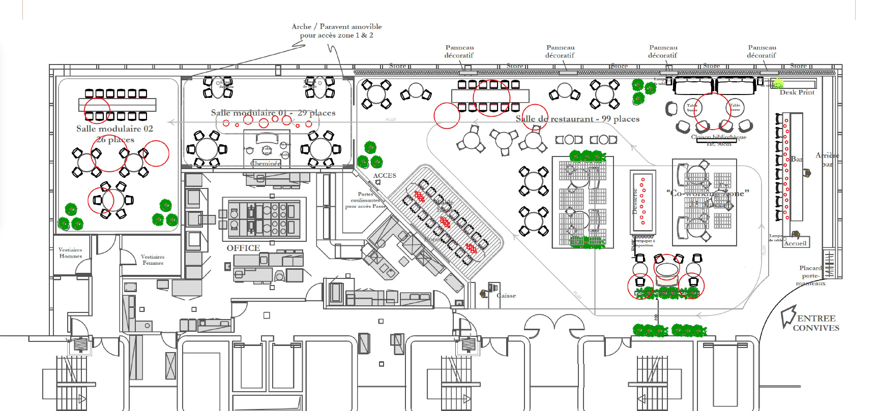 1 espace de réception pour la soirée + 1 cocktail comprenant 15 pièces par pers. + 1 bouteille de vin pour 3 pers. |