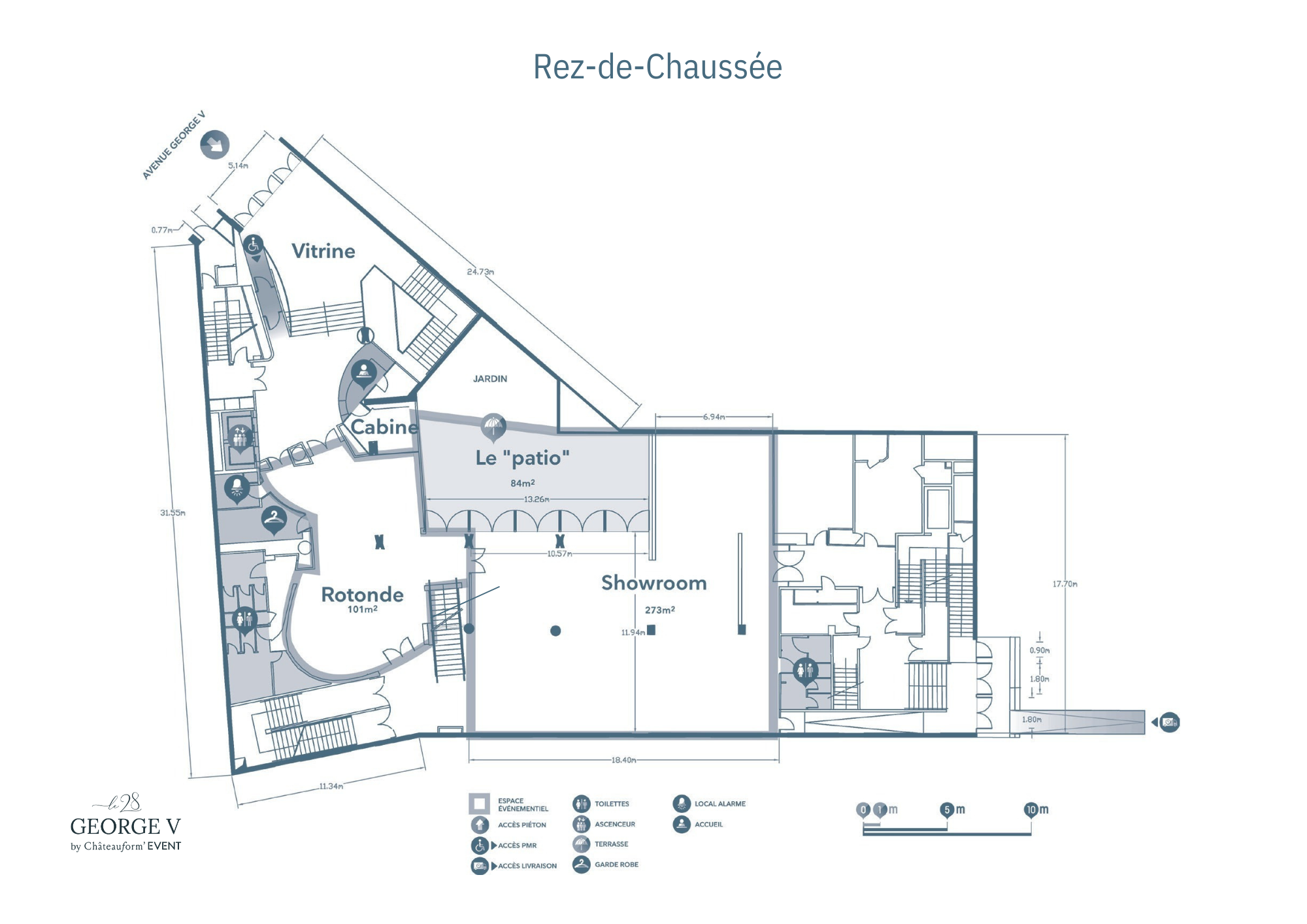 À deux pas des Champs-Élysées, dans le prestigieux Triangle d’Or, Le 28 George V réinvente l’événementiel avec l’élégance et l’audace de la haute couture. Ce lieu singulier mêle patrimoine et design, dans une atmosphère poudrée et colorée, propice à l’inspiration et à la déconnexion.