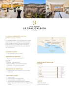 Au calme, en retrait de la Croisette mais à proximité de toutes les festivités cannoises, l’Hôtel Le Gray d’Albion, entièrement rénové en 2018, réserve son 1er étage aux entreprises. Une offre complétée par des infrastructures sportives et un service sur mesure. Quel cadre plus prestigieux offrir à vos événements?