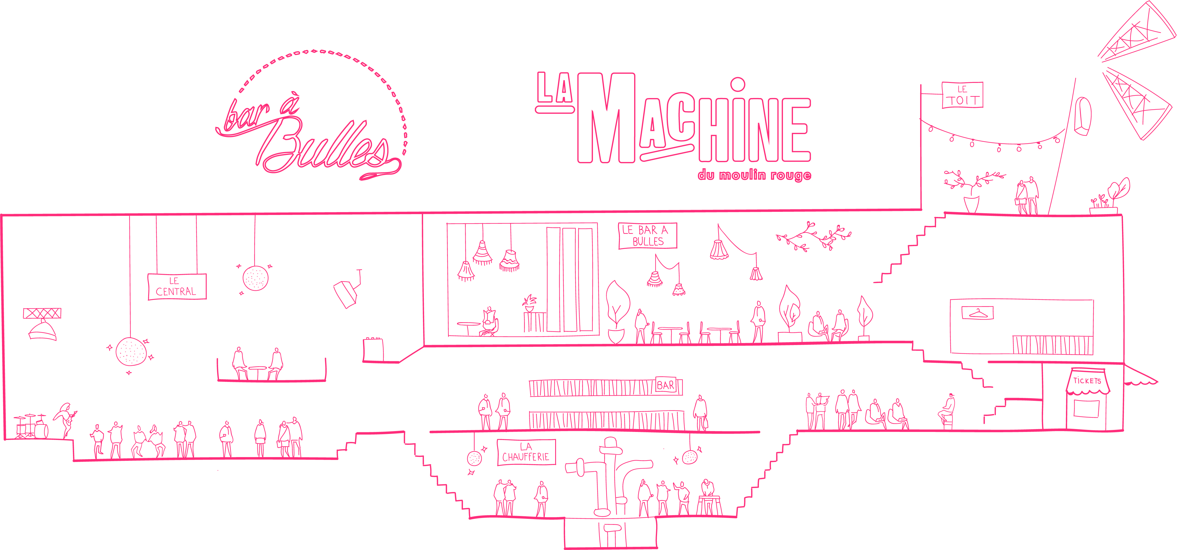Disruptive, non-conventionnelle, la Machine fait gure d’Ovni dans le paysage événementiel parisien et répond aux tendances actuelles des entreprises : disposer d’une alternative originale et clé en main face aux sempiternels lieux de réception. A la fois salle de concert, club et auditorium, le Central offre une modularité hors du commun avec de beaux volumes.