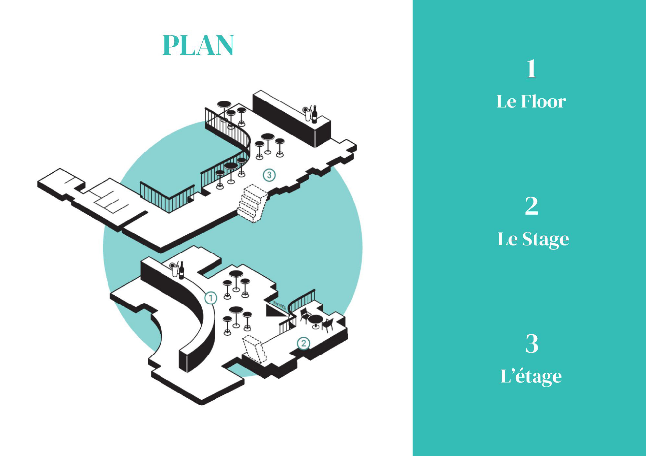 1 espace avec piste de danse pour la soirée + 1 cocktail comprenant 15 pièces par pers. + 1 bouteille de vin pour 3 pers. + 2 verres d’alcool par pers. |