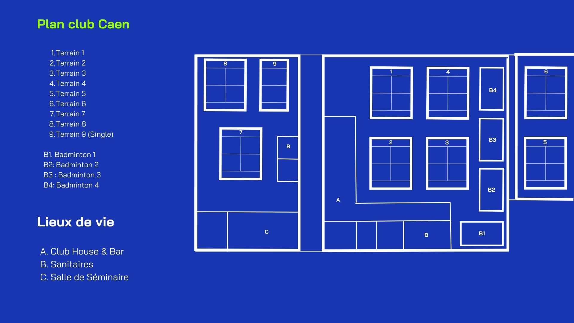 Situé à Caen-Mondeville, notre club est composé de 8 pistes de Padel, 4 terrains de Badminton, pétanque, zone multi activités (billard, ping-pong, le tout équipé avec notre partenaire Cornilleau).