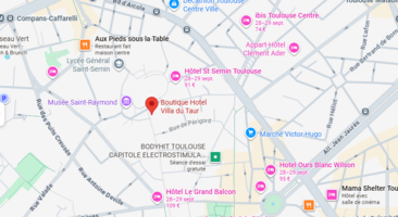 Le Logis Hôtel Villa du Taur vous propose une halte artistique à Toulouse, au pied de la Basilique Saint-Sernin inscrite au patrimoine mondial de l'Unesco, et à quelques pas de la célèbre place du Capitole.